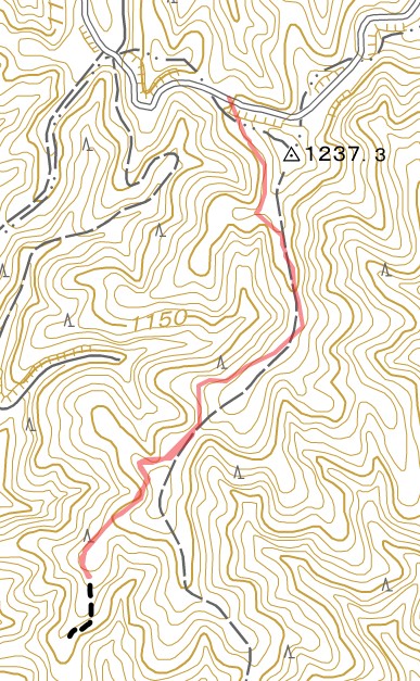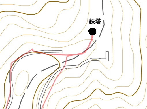 この地点は地図上分断されているが実際はこの様に繋がっている(赤線は走行Log)