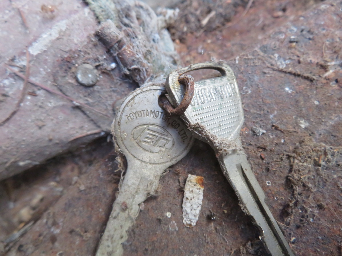 中を覗くと特に変わりない様子 キーも健在だ 抜いて確認したら TOYOTA の文字が (゚o゚)