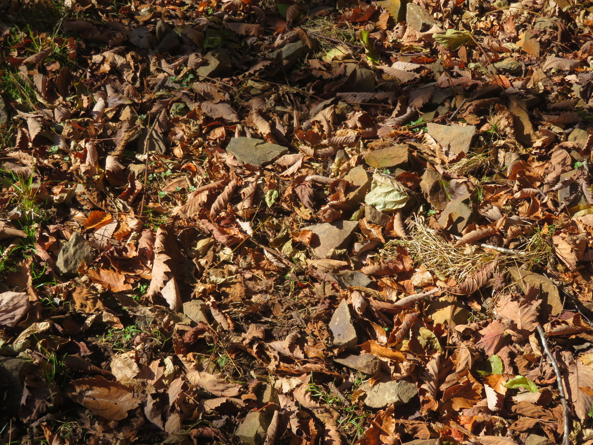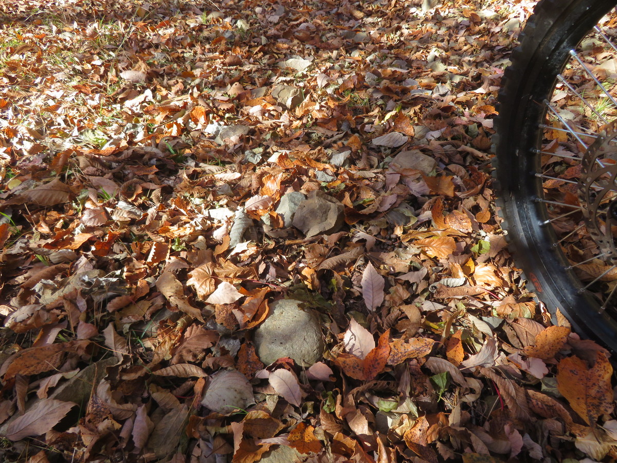 枯れ葉の絨毯は大好きですが、石は要注意ですね!