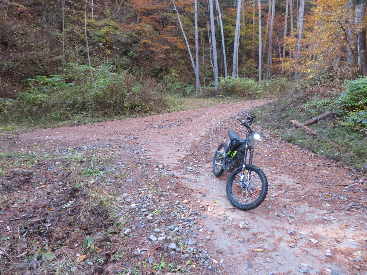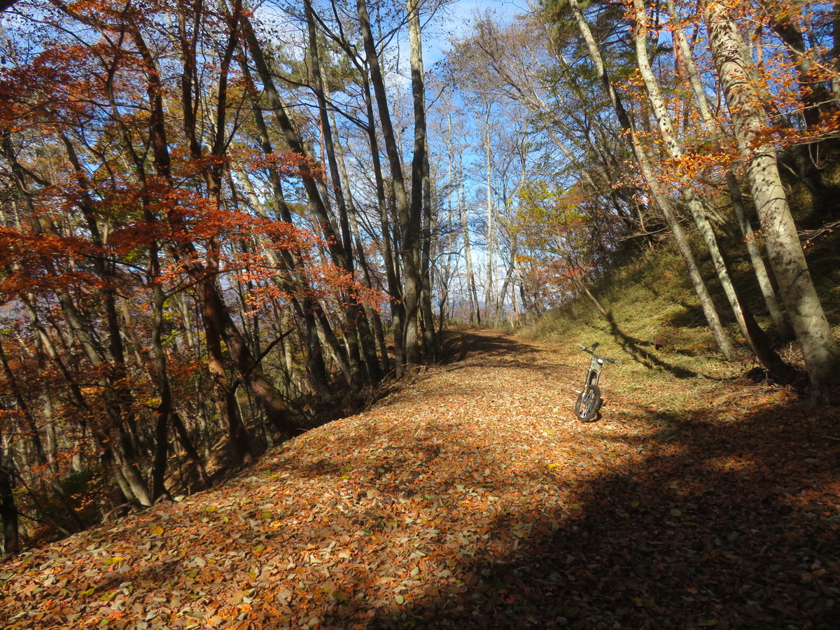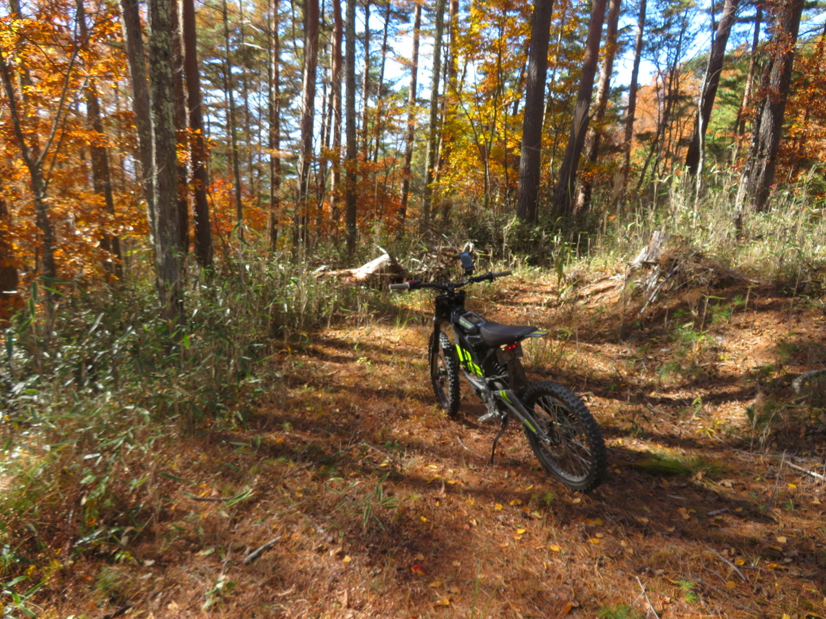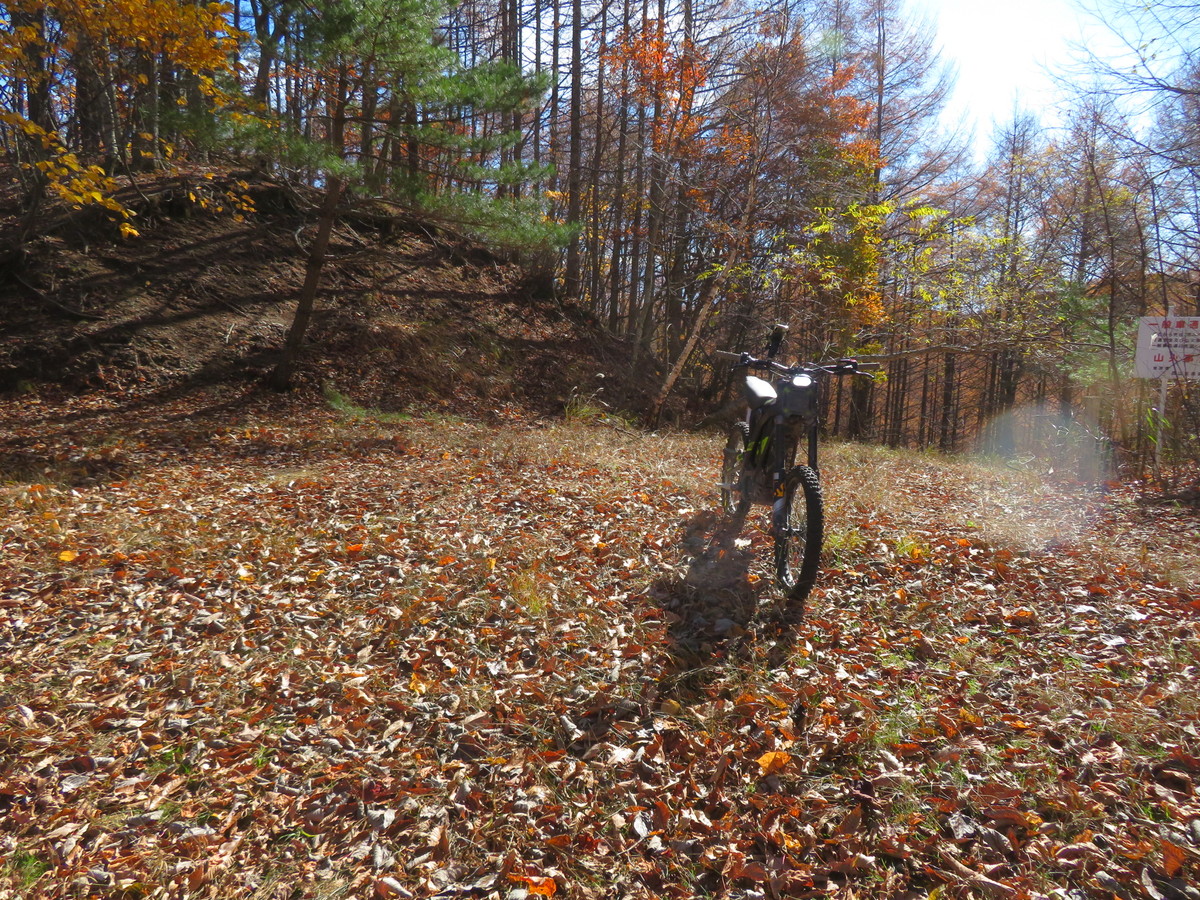 開けた分岐でダート終了 スタート地点からここまでで13.1㎞ バッテリー残72% よしよし余裕だ